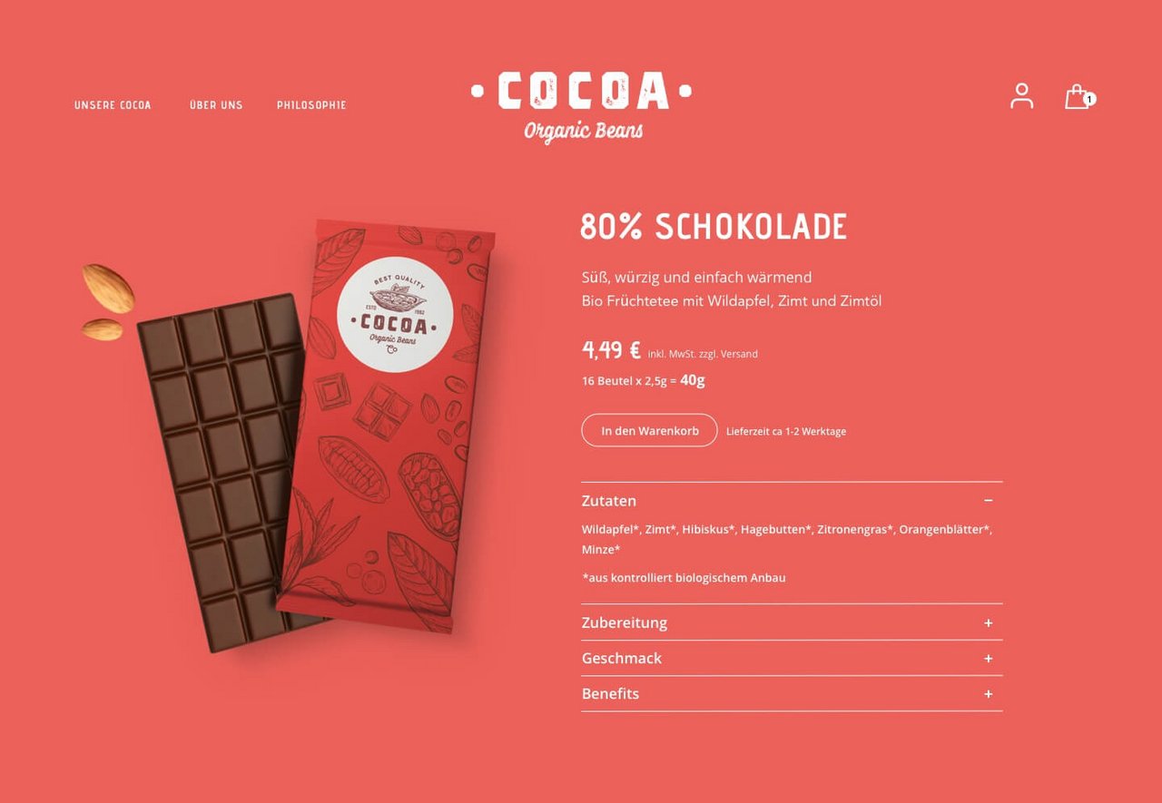 Die süße Note von Cocoa vermittelt sich durch das Zusammenspiel von fein abgestimmten Zutaten einer durchdachten UX-Strategie.