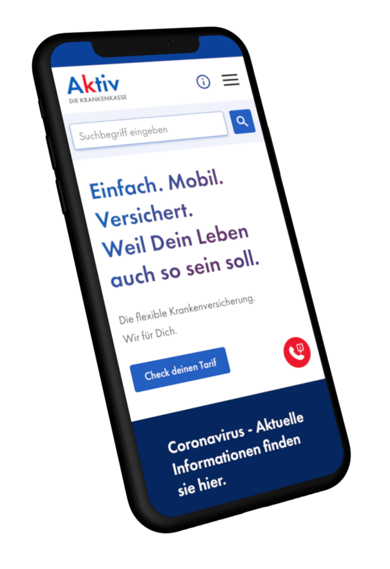 Optional kann der Nutzer auch direkt über den Suchschlitz seinen passenden Tarif, aber auch weitere nützliche Inhalte finden.
