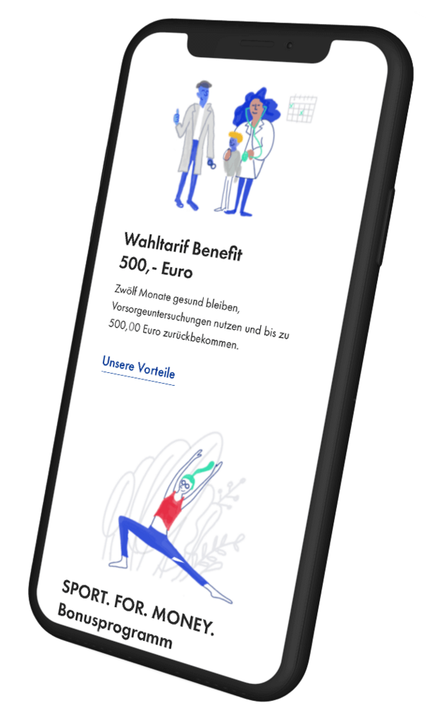 Der junge, dynamische und persönliche Charakter der Illustrationen soll der Krankenkasse ein frisches, nahbares und menschliches Erscheinungsbild geben.